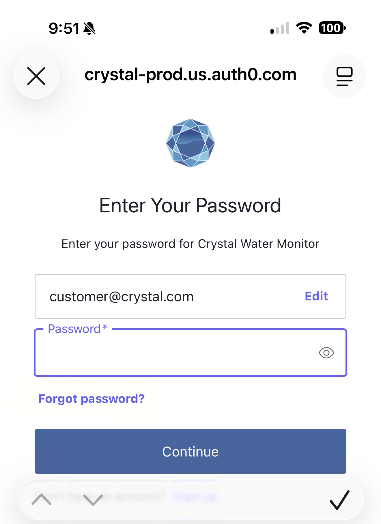 To get to the "Forgot Password" link, enter your email address used to create your account and tap on "Continue.